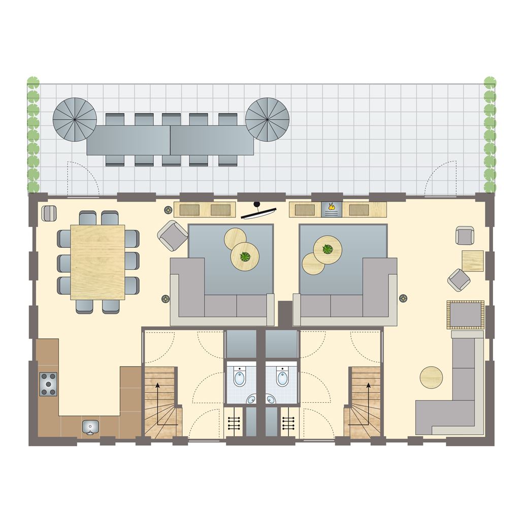 Beskrivelser, billeder, specifikationer og grundplaner af ferieboligerne er vejledende og kan variere.