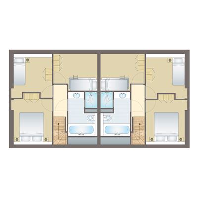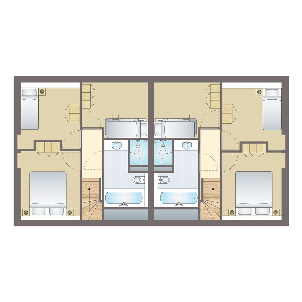 - Twee slaapkamers met 2-persoons Auping boxspring (2-persoonsdekbed) en softtopper op de eerste verdieping