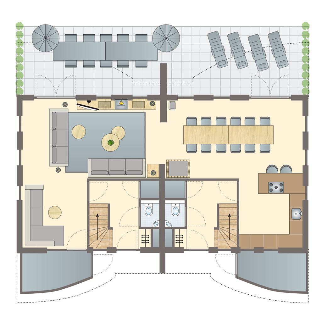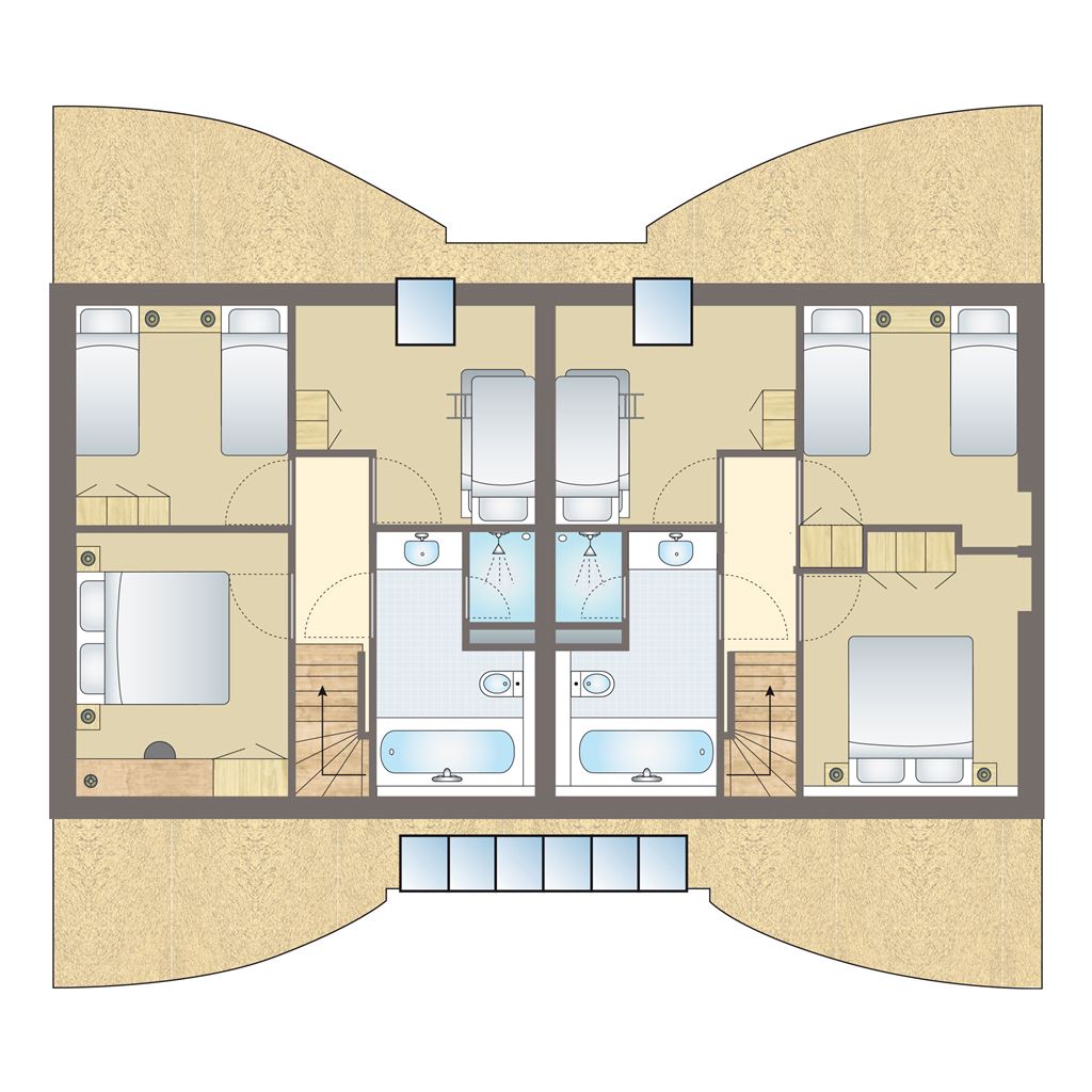 - Twee slaapkamers met 2-persoons Auping boxspring (2-persoonsdekbed) en softtopper op de eerste verdieping