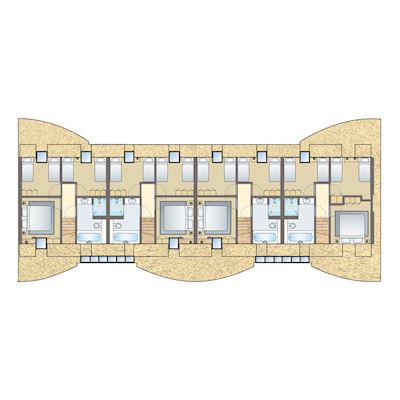 - Otte soveværelser med to enkelte Auping senge
