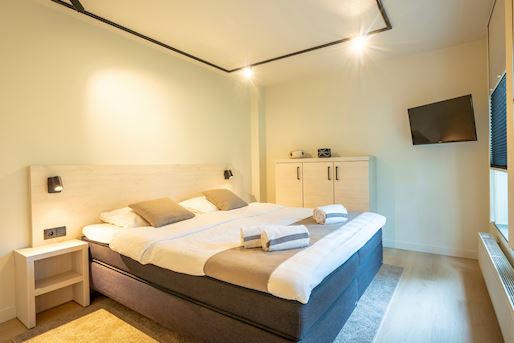 - Soveværelse med en dobbelt Auping senge, 2-personers topmadras og fladskærms tv