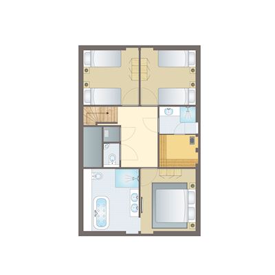 - Soveværelser med en dobelt Auping seng og 2-personerstopmadras